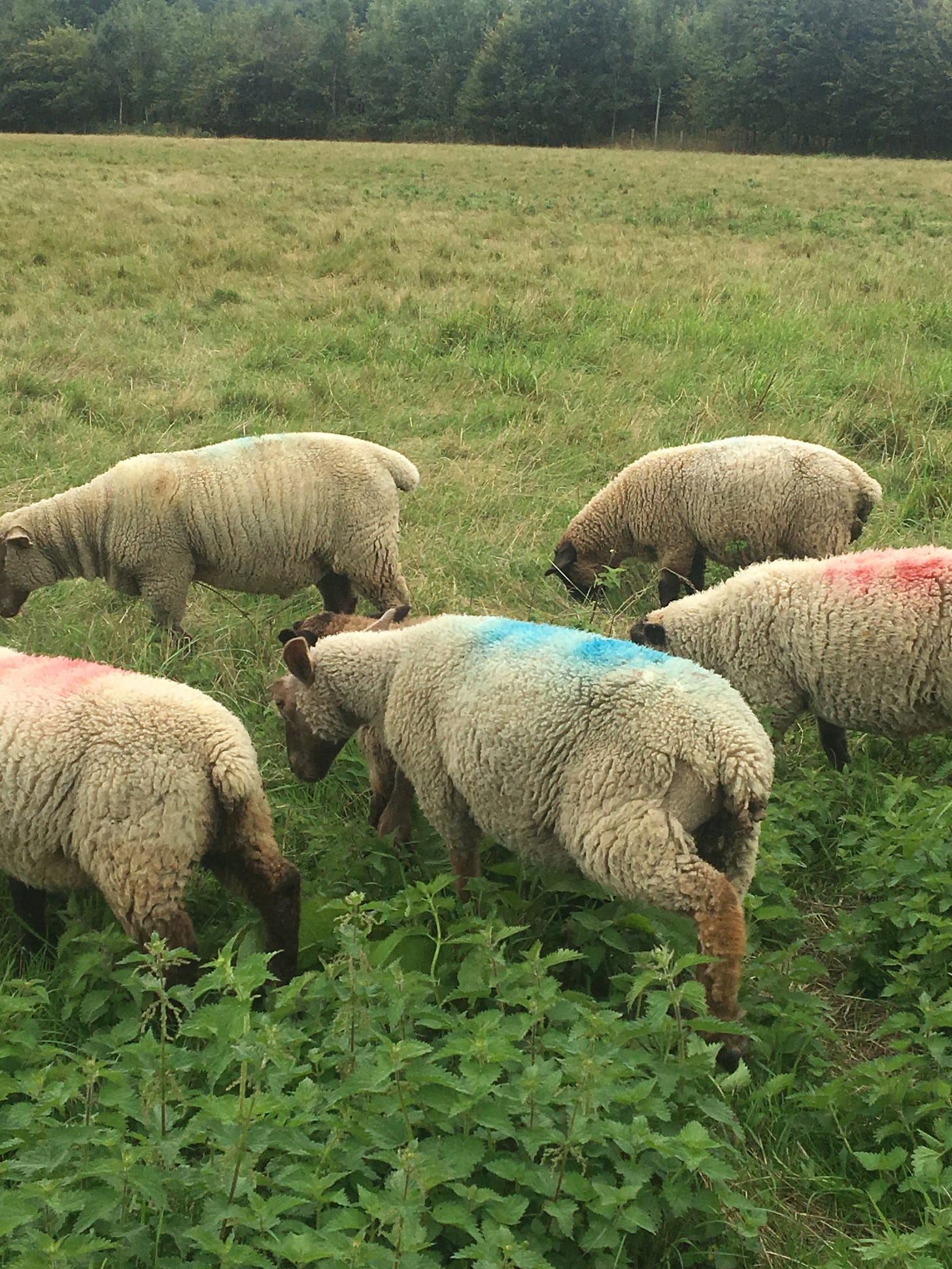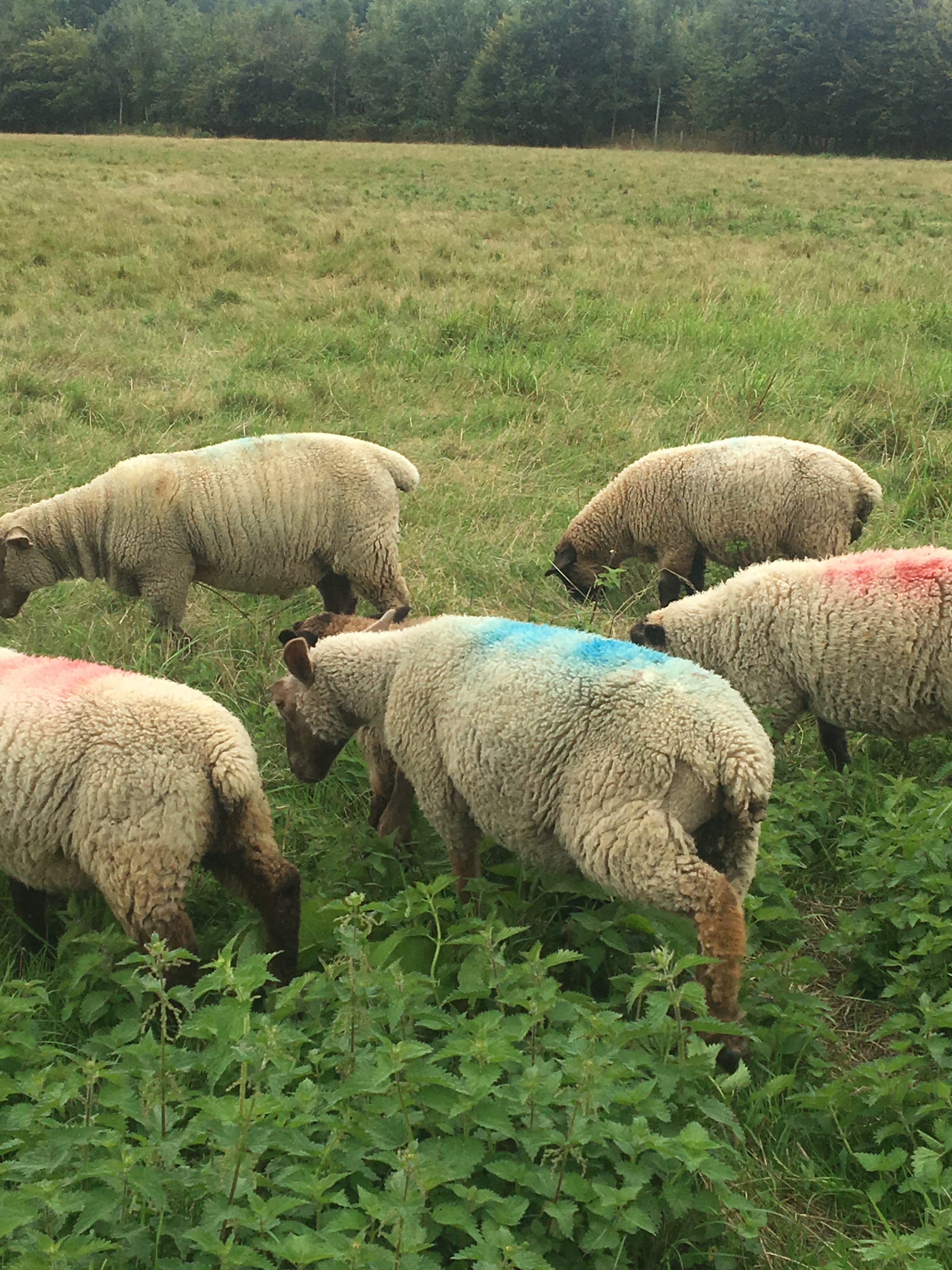 I am walking to the orchard with Luca. I want to get apples to make apple crisp and he knows the way. He reminds me so much of my friend John that I feel comfortable not saying a word. His sister is dying of cancer in London and he has come out to the country for a break. After a while we talk about American accents. I teach him how to say, “What the fuck is that?” and “Are you fucking kidding me?”, which we practice in Brooklyn voices through a stretch of path. He’s really good at it. We pass through these little tunnels of overgrowth, trees and vines and leaves so green they’re black. A gang of sheep appears across the way. I say hello to the sheep and they all step in closer, all together, all quietly looking at me. They want apples too. Later, after midnight, I make apple crisp, mixing the flour and butter with my bare hands like a medieval maid. The smell fills the room and afterwards we all eat quietly saying mmm, our spoons clinking against the china